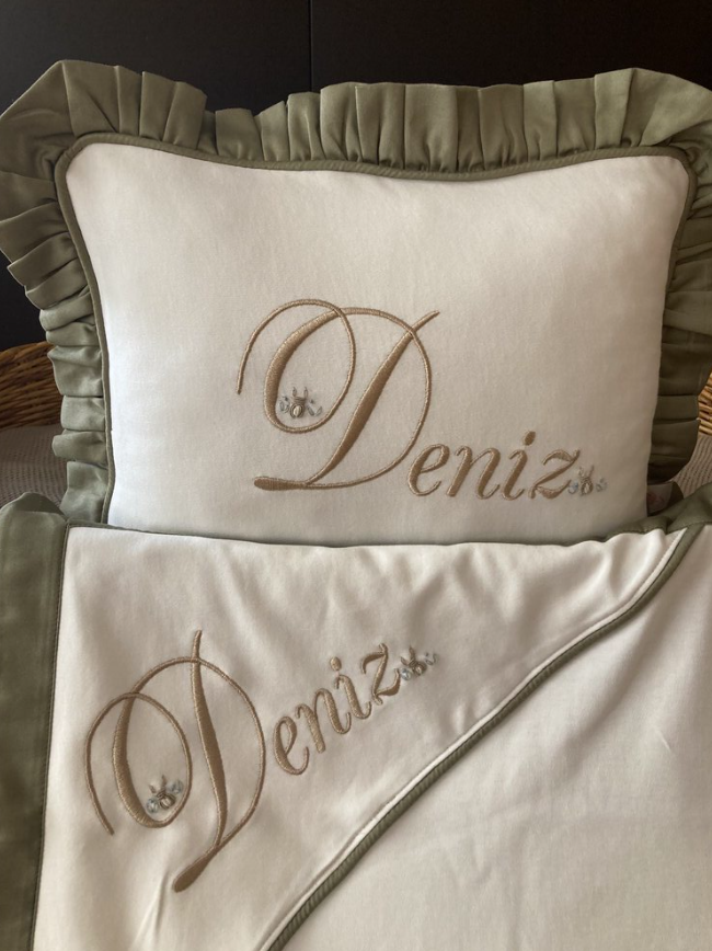 For double names (blanket and pillow), the font size is slightly smaller to fit the name.
