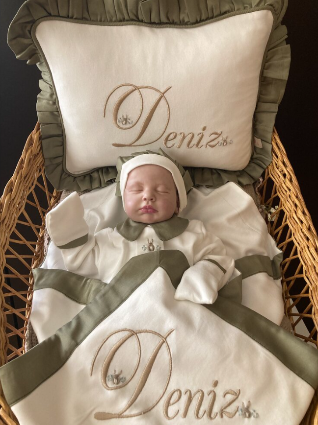 Our set, consisting of overalls, hat, blanket and pillow, is made of 100% combed cotton, all of which are our own production and design.
