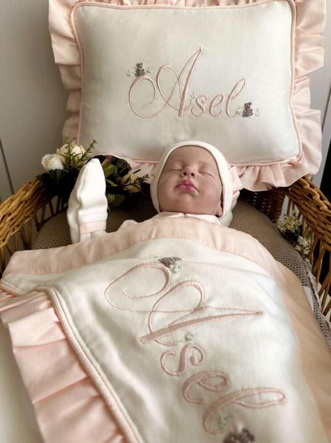 For double names (blanket and pillow), the font size is slightly smaller to fit the name.