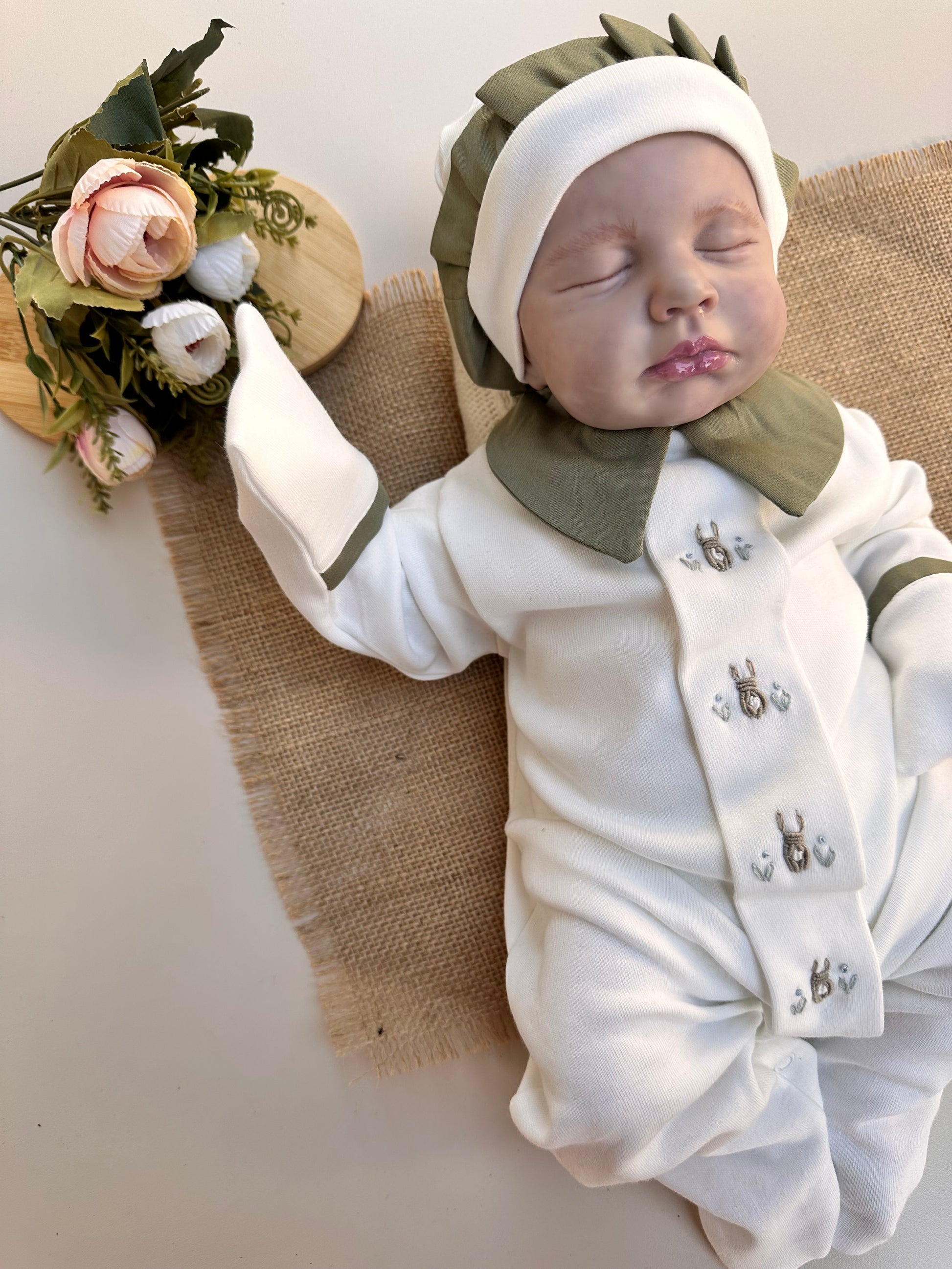 Haki Tavşanlı Tulum ve Fırfırlı Bere Şapkası