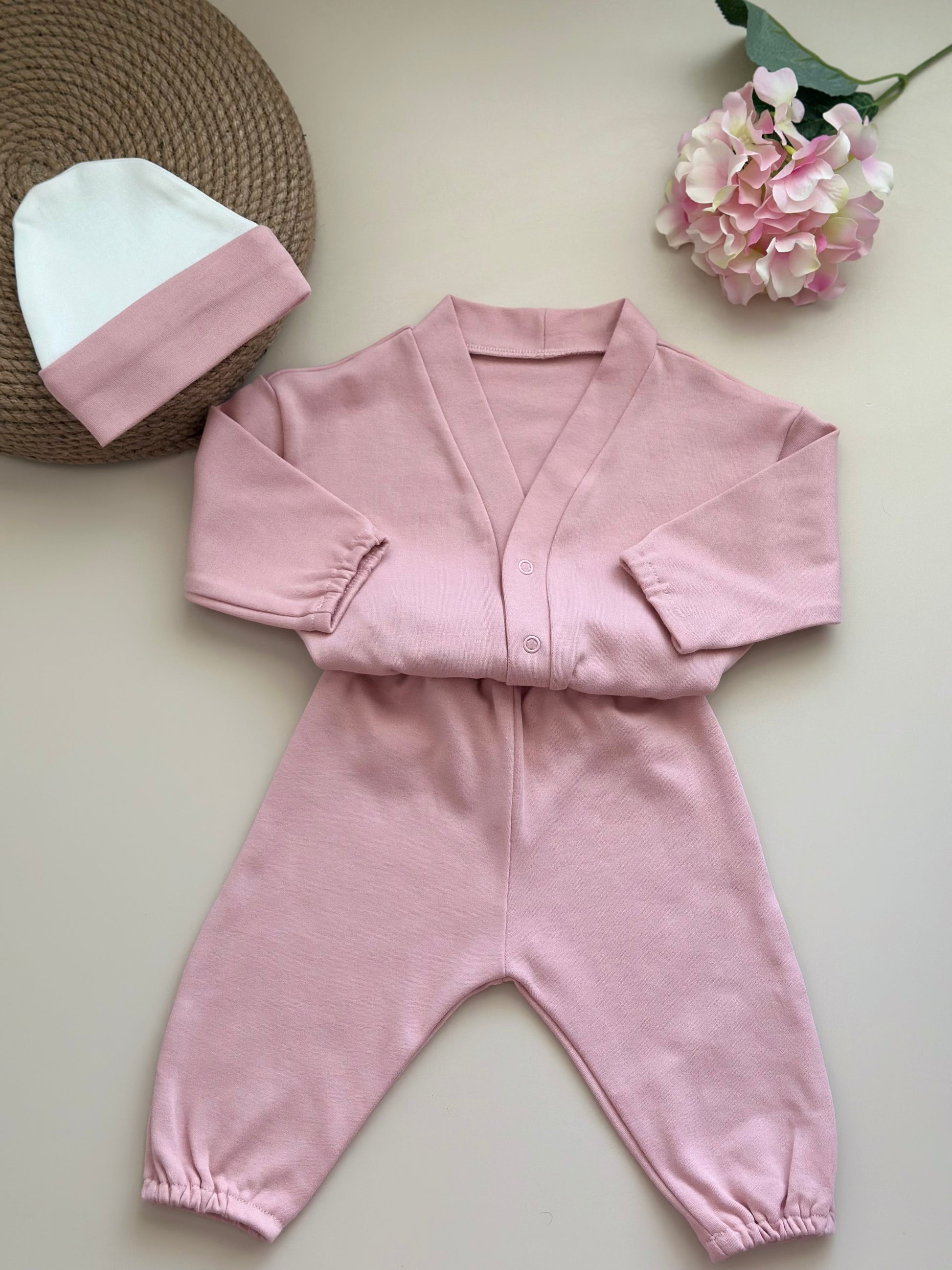 Gül Kurusu Ceket-Pantolon-Bere Takım - %100 Pamuk