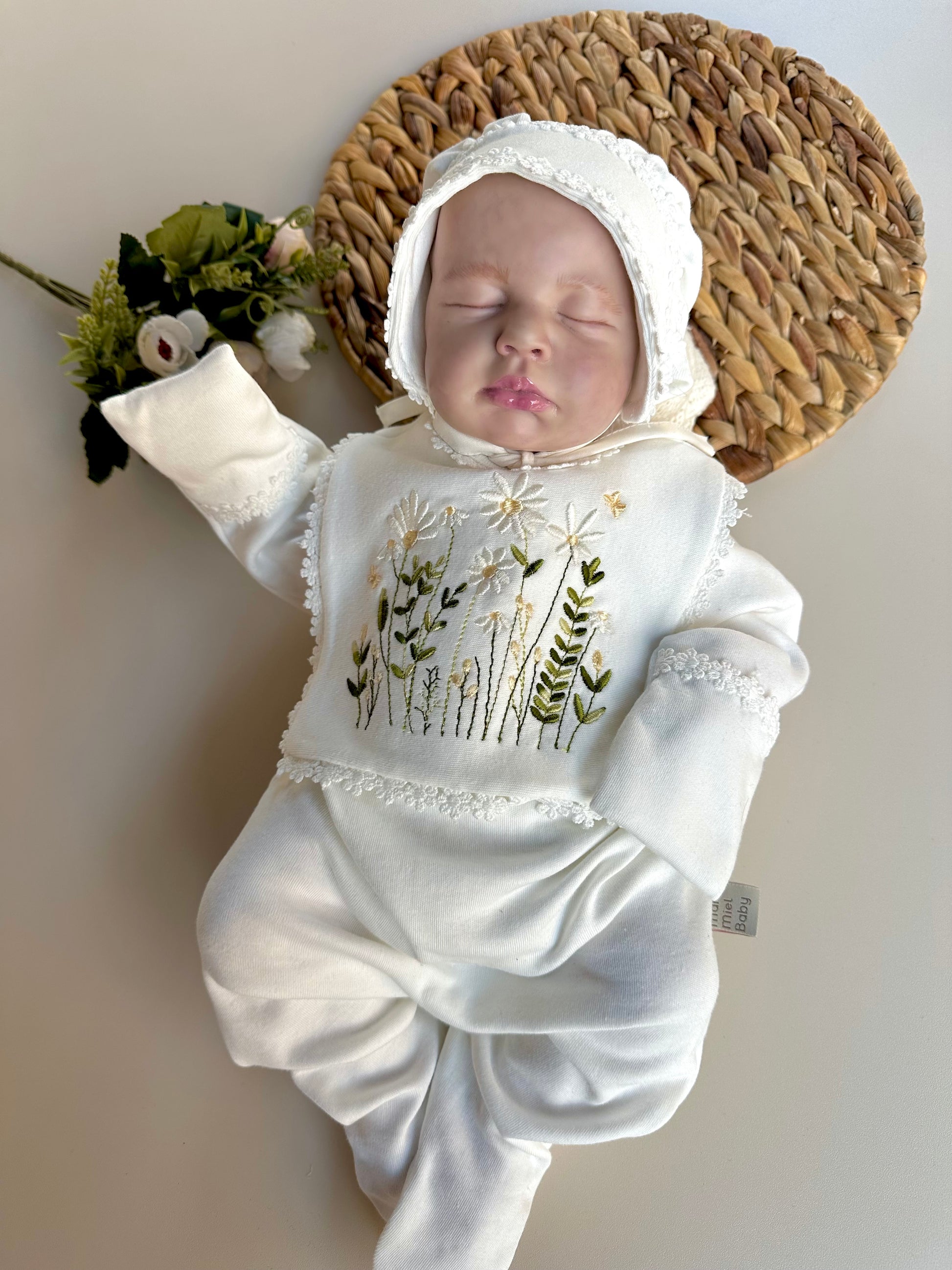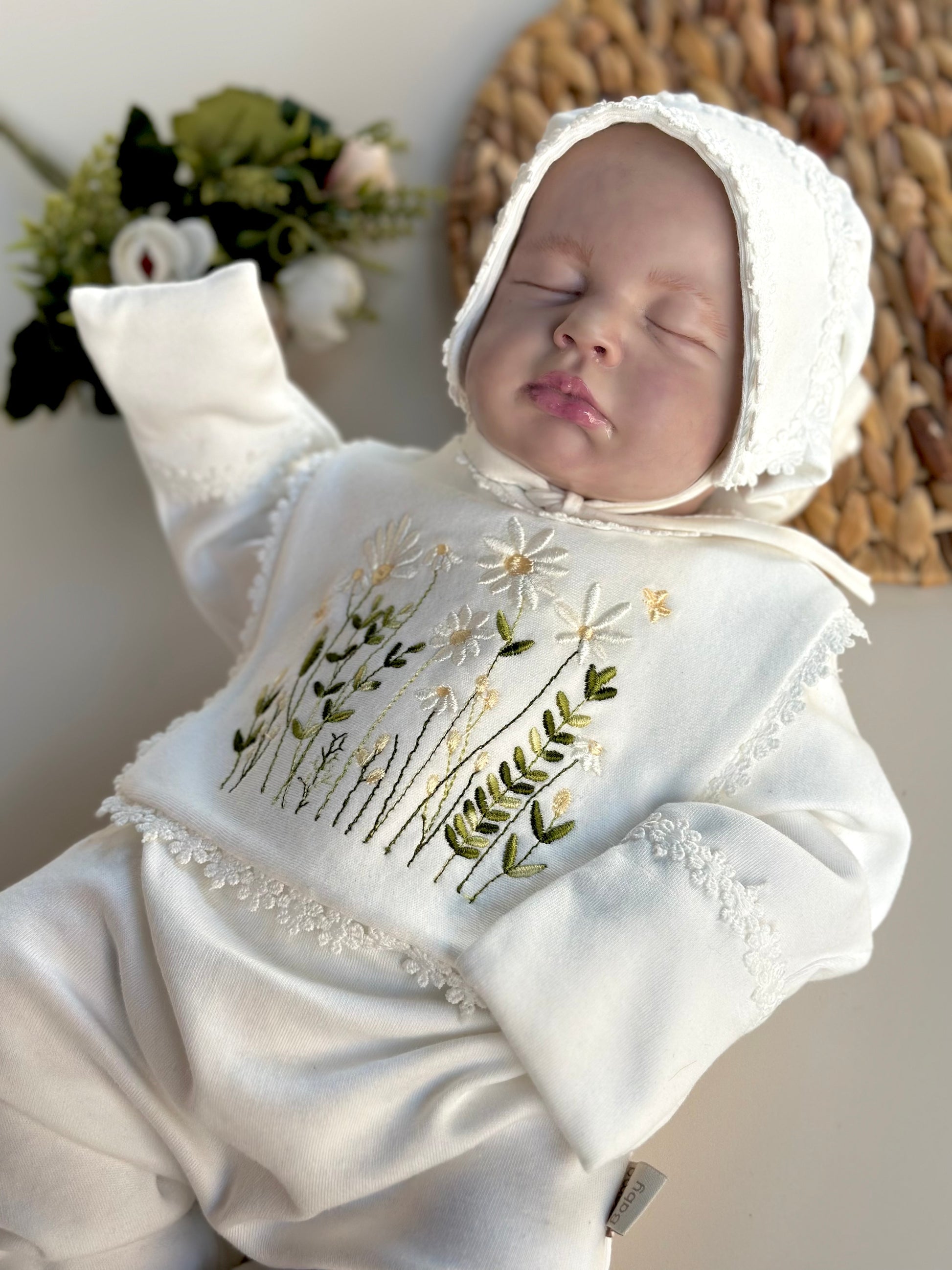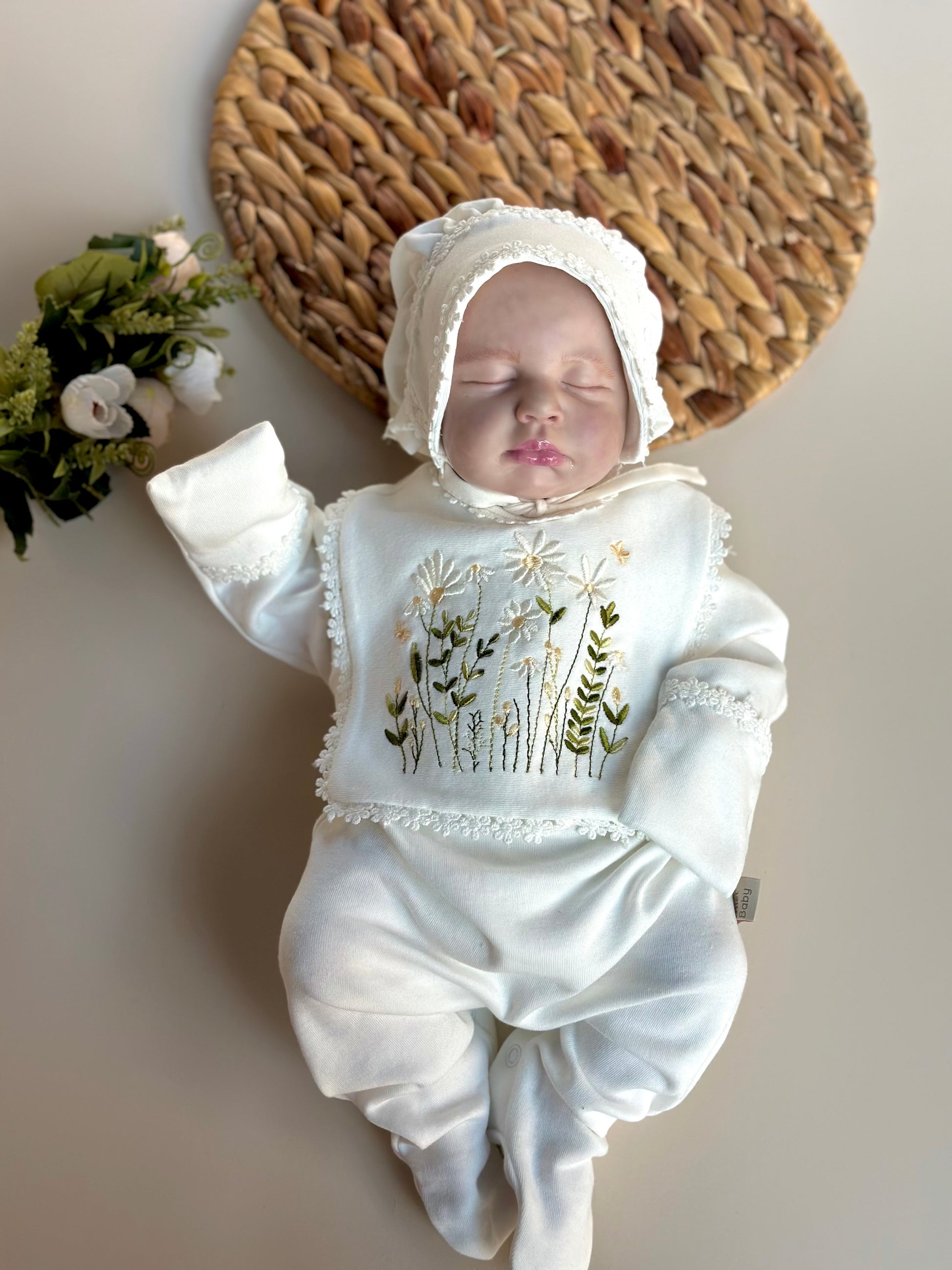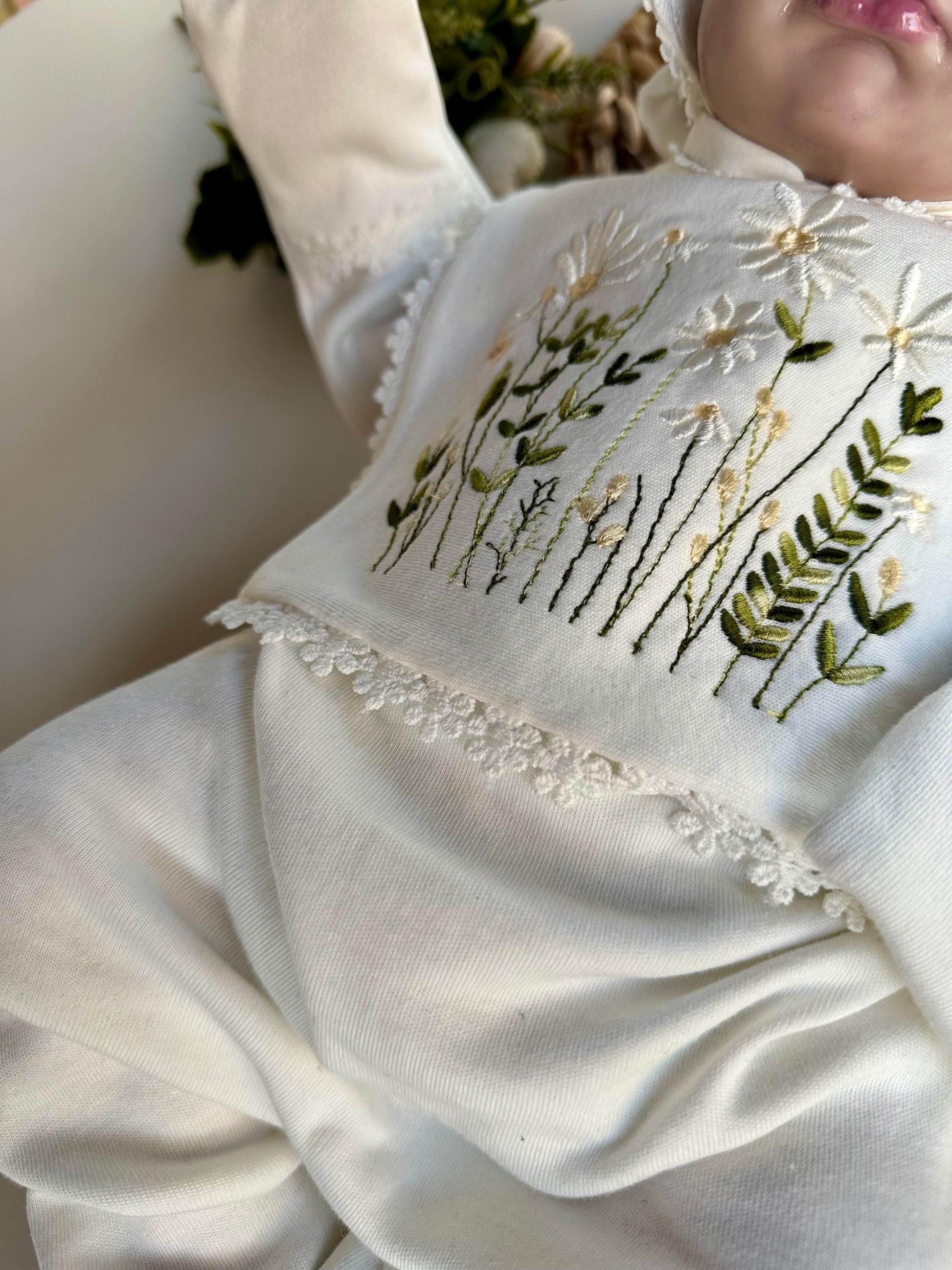Papatya Nakışlı Önlükü Tulum ve Şapkası
